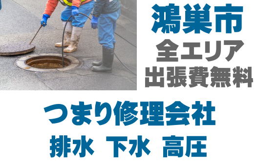 鴻巣市の水回りの詰まりを即解決!キッチン、トイレ、風呂、洗面、マンホール、雨どい、シンク、厨房、グリストなどの詰まりトラブル対応。