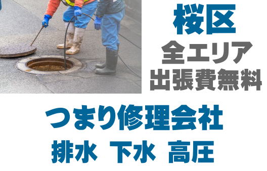 桜区で排水つまり、トイレ詰まり、シンクつまりなどの排水トラブルはお任せください。店舗の厨房、グリストつまりも対応しております。